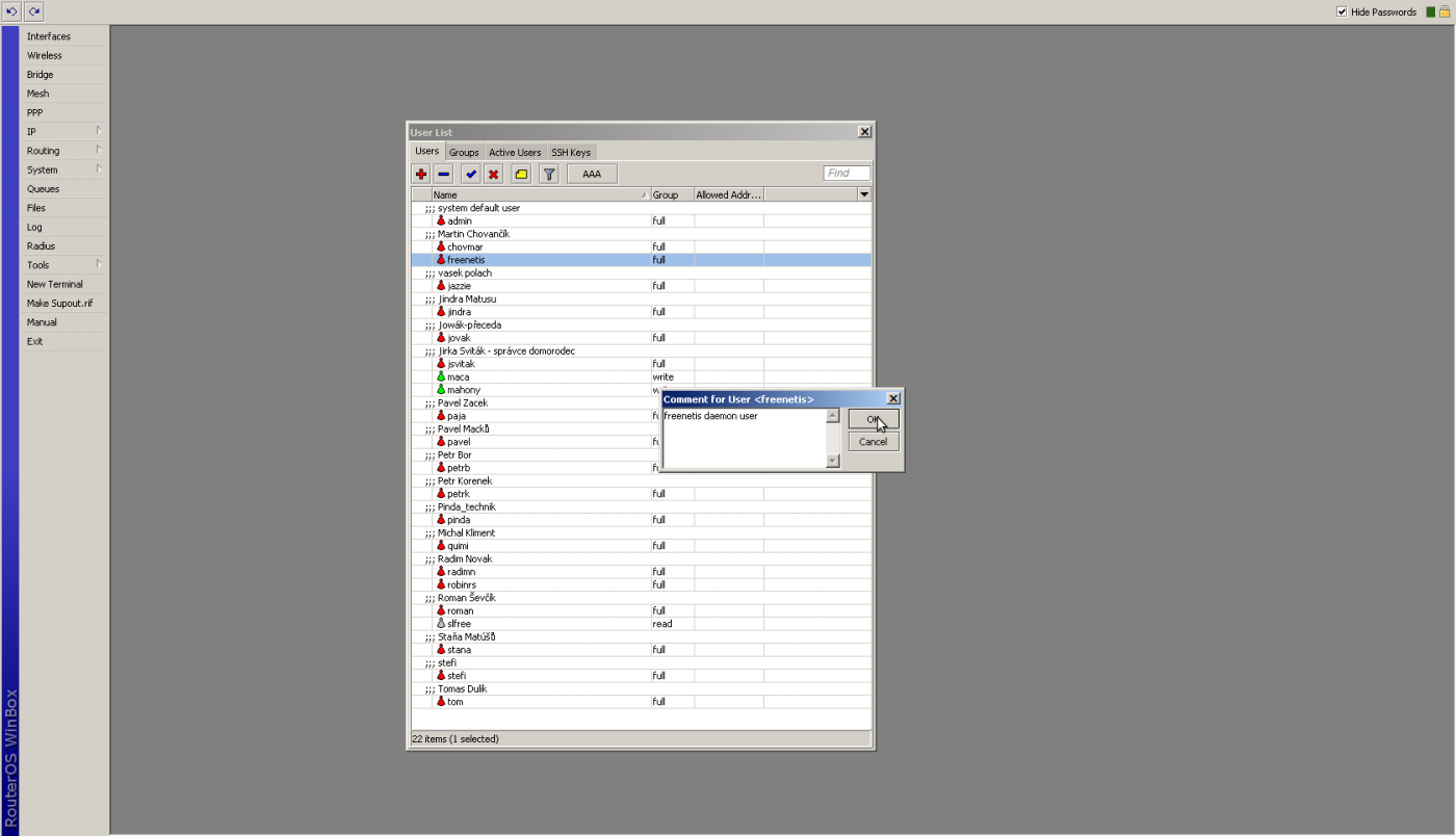 user add name=freenetis comment="freenetis daemon user" password=$freenetis_heslo group=full