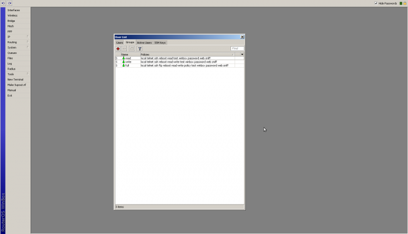 Smažeme všechny skupiny kromě základních (full, write a read)