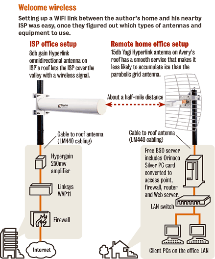 Jestliže si chcete pořídit vlastní Wi-Fi síť doma společně se svými známými ze sousedství, je mezi vámi dobrá přímá viditelnost a nejste od sebe vzdáleni více než 1 km, stačí vám k zasíťování jeden kvalitní Access Point se všesměrovou anténou. S největší pravděpodobností jej umístíte u toho, kdo bydlí uprostřed nebo vlastní nejlepší připojení k Internetu. Všichni ostatní, kteří budou v dosahu signálu, musí nakoupit jen Wi-Fi síťové karty pro slot PCI a případně ještě investují do směrové antény, pokud nejsou v úplné blízkosti a chtějí silný signál a vyšší rychlost.