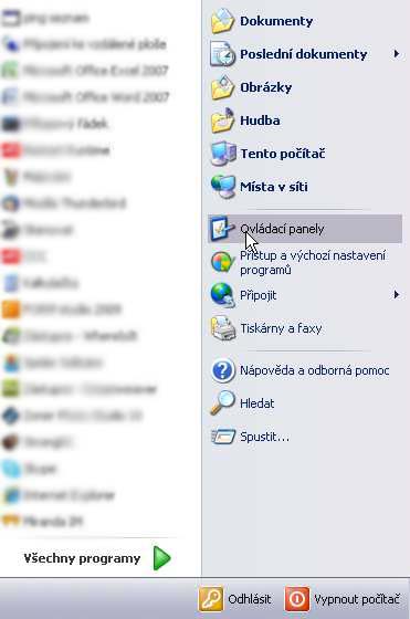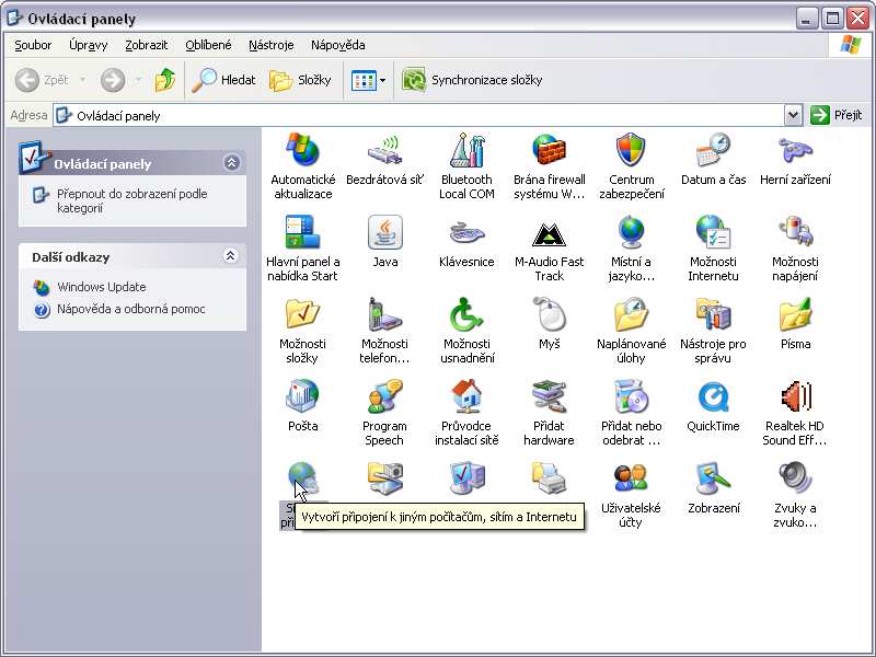 nebo pokud tuto možnost v nabídce Start nemáte, tak Start - Ovládací panely - Síťová připojení.