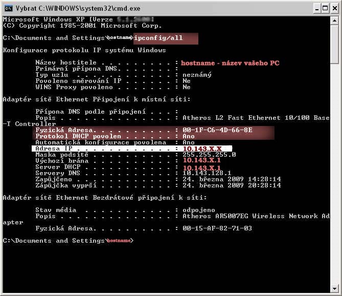 Jak zjistit IP adresu v počítači? (A další údaje jako MAC adresu, apod...)